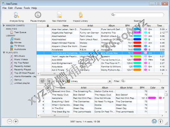 應用元件。該軟體可以分析 BPM(每分鐘的節拍),歌曲開頭和結尾靜音以及彩色(根據音