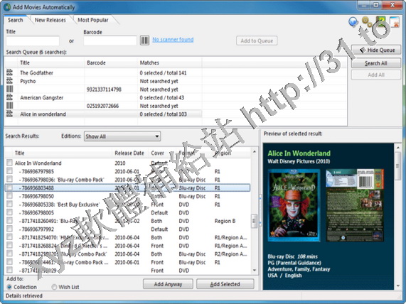 Catalog your DVDs and Blu-Ray discs by Title or Barcode ?No need