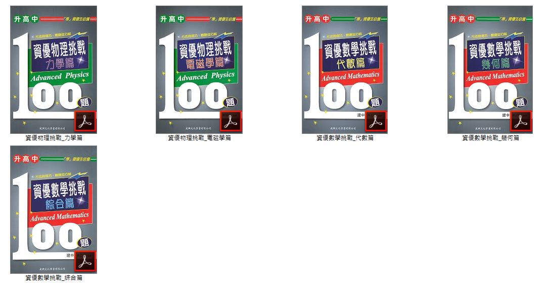 110年 建興 升高中 資優物理挑戰100題(電磁學篇+力學篇)+資優數學挑戰100題(綜合篇+代數篇+幾何篇)卷類光碟