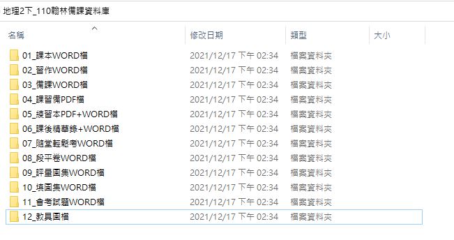 110學年下學期 國中 翰林版 地理備課資料庫 2年級(含課本、卷類資源、備課用書、習作含解答、教學輔助資源)教學光碟