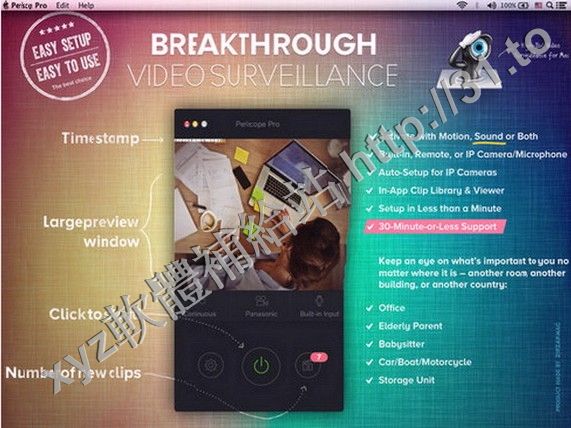 Periscope Pro 是易用應用程序,使用你的Mac內置攝影機和麥克風或外攝影機和麥克風,作視頻